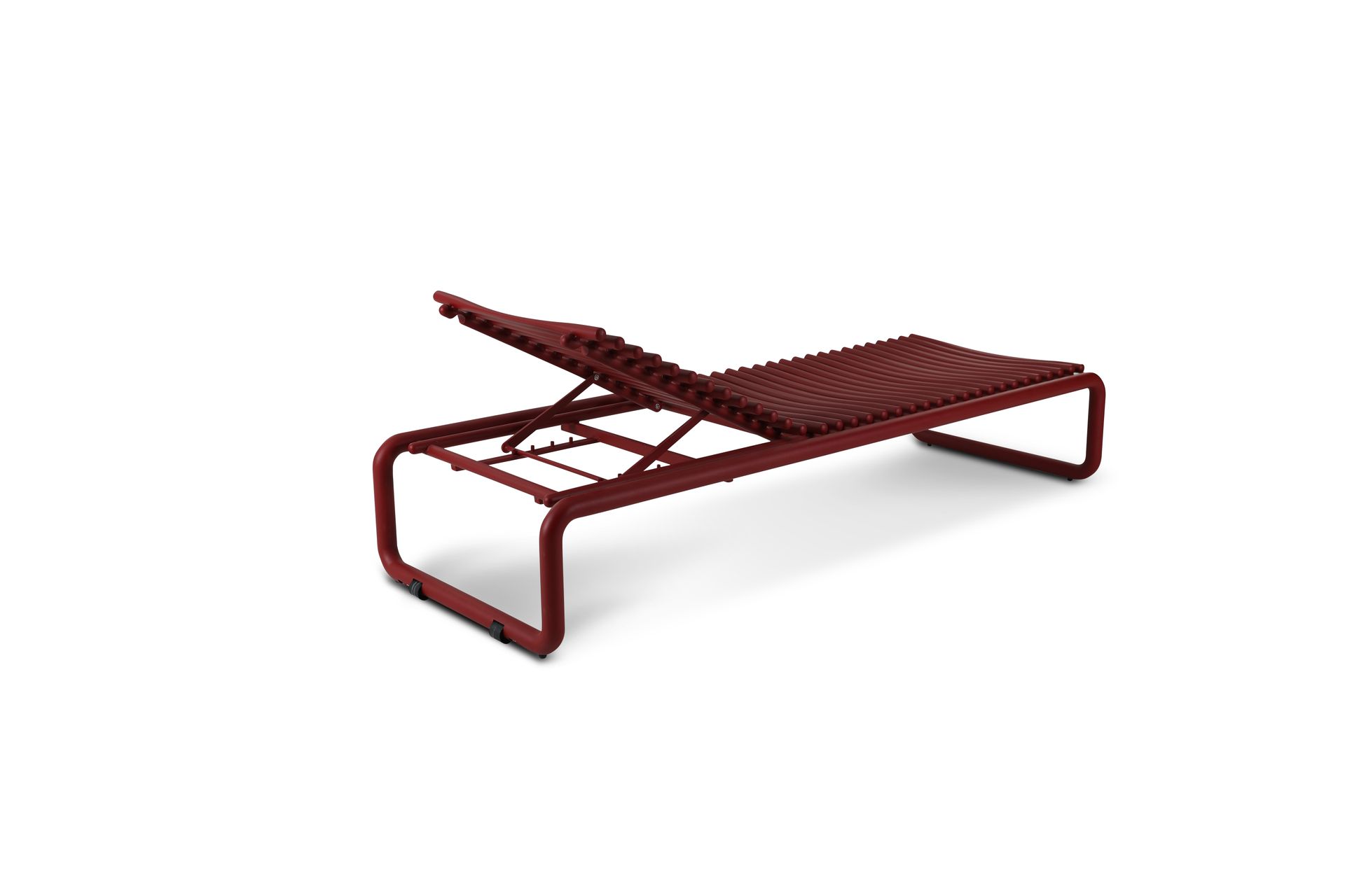 Sunlounger Florio features several thoughtful details and practical design elements. The tubes are shaped and pressed for extra comfort, subtle wheels are integrated into the rear bottom tube, and the backrest can be adjusted to multiple positions.